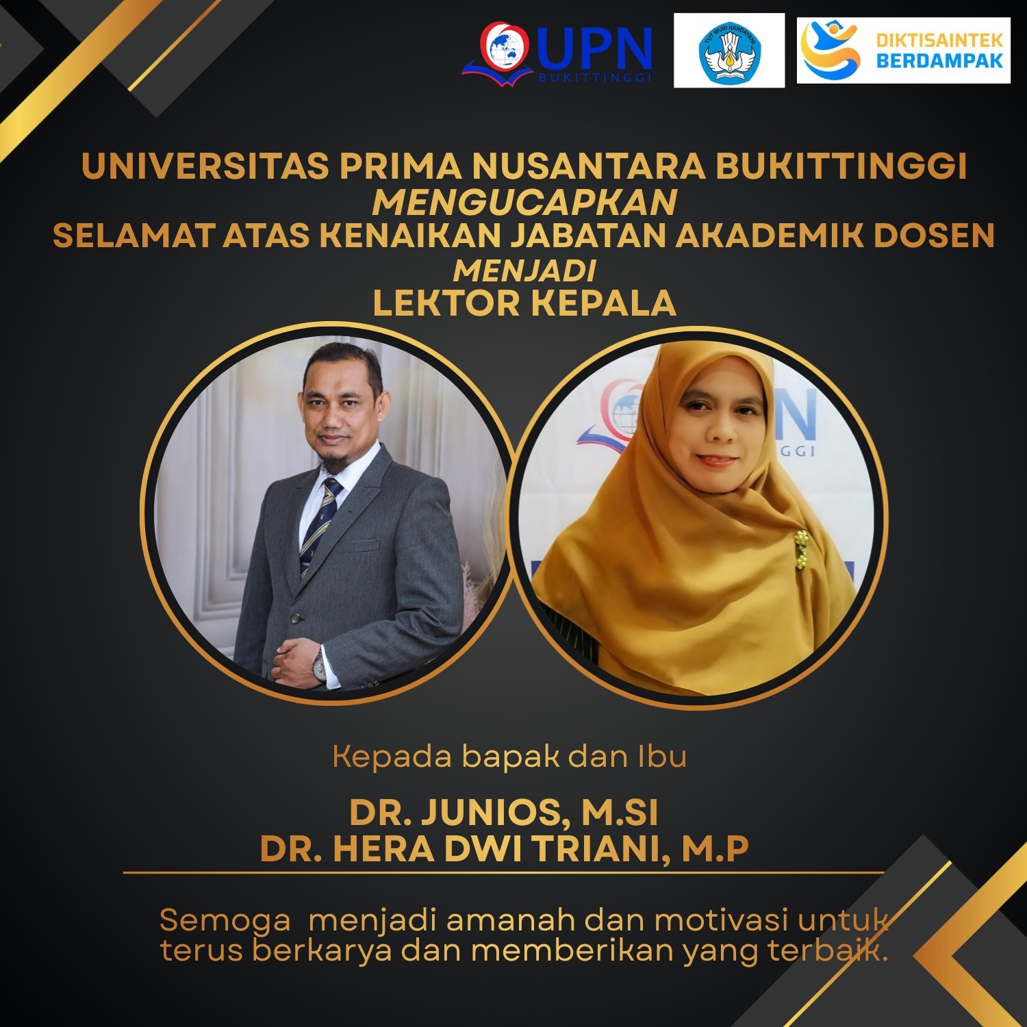 Fakultas Sains, Sosial, dan Pendidikan kembali menorehkan prestasi membanggakan dengan kenaikan jabatan fungsional dua orang dosen mereka, yakni Bapak Dr. Junios, S. Si., M. Si, dan Ibu Dr. Hera Dwi Triani, S. PT., M. P. Semoga kenaikan jabatan ini dapat bermanfaat untuk umat.